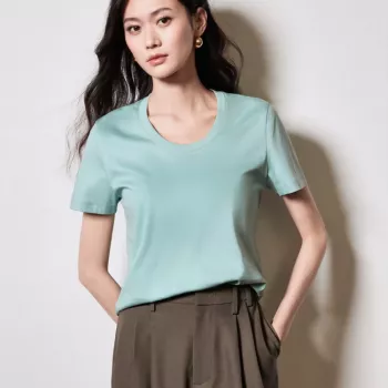 Women’s Silk U-Neck Short Sleeve Pullover T-shirt